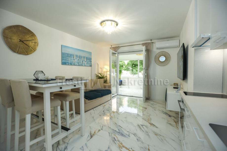 Prodaje se luksuzan novouređen potpuno namješten stan površine 50 m2 na Bulevaru u Zadru. Stan se nalazi u visokom prizemlju stambene zgrade.