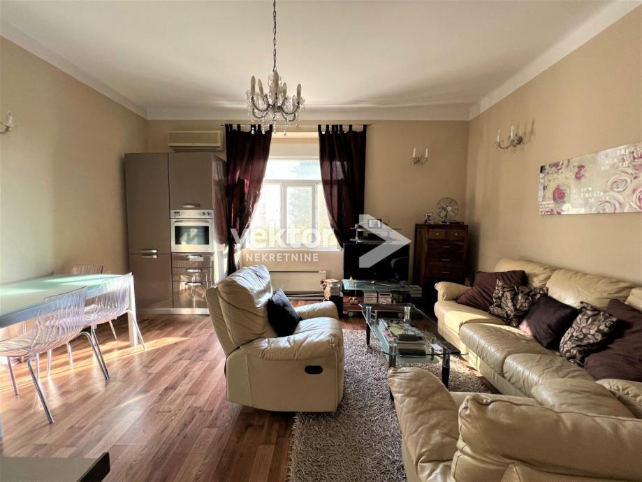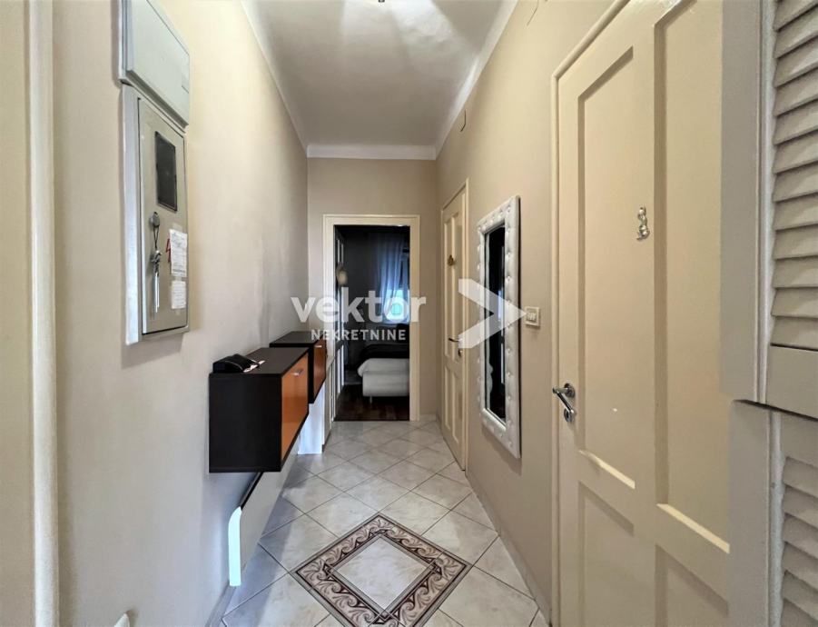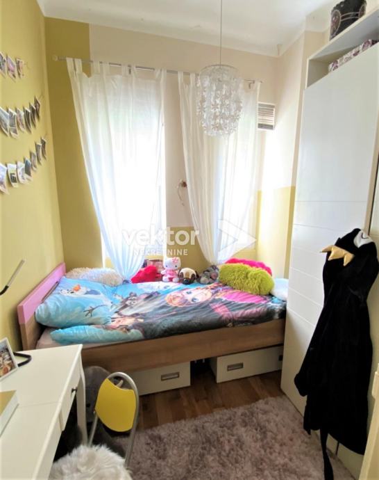 Stan u kojem je dobro iskorišten svaki kvadrat, pa su u 52m2 izvedene dvije spavaće sobe, dnevni boravak sa kuhinjom i blagovaonom, te hodnik i kupaona. Kroz godine je uređivan i dobro održavan, vanjska stolarija je pvc, na podovima su laminati i keramika novijeg datuma, a puno pažnje je posvećeno je detaljima. Namještaj nije uključen u cijenu. Od dodatnih prostorija stan ima dva spremišta, a uređenu okućnicu zgrade koriste svi stanari.