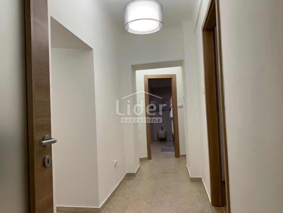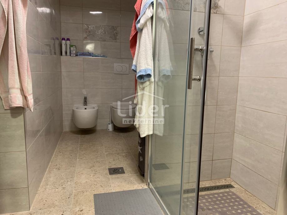 Rijetkost na tržištu! Kompletno renoviran trosobni stan sa kuhinjom, blagovaonicom i boravkom, dva hodnika, dvije kupaonice sa WC-om površine 90 m2, terasom (20m2) i drvarnicom 7m2. Poseban ulaz, mirna lokacija, sunčana jugoistočna pozicija, prizemlje, pogled na more. Idealno za obitelj sa malom djecom i kućnim ljubimcima (terasa, vrt) Kolni prilaz autom do ulaza. Prodaje se kompletno namješten. POGLEDAJTE!