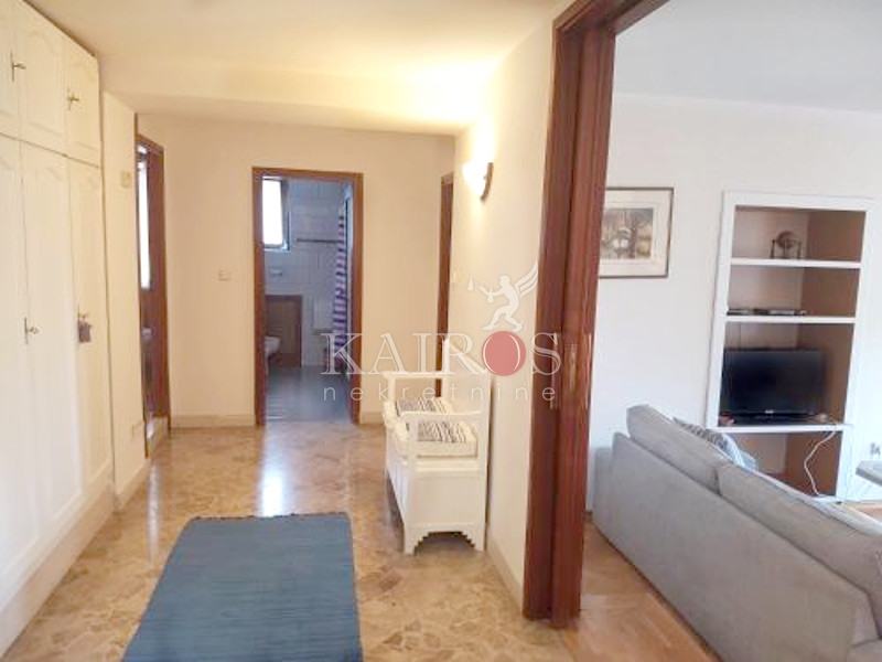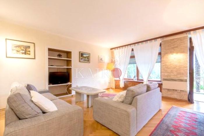 BULEVARD, gospodski stan u vili, površina stana 90 m2, 2S+DB, komforan, odlična pozicija. Iz dnevnog boravka direktan izlaz na lijepo uređenu (ograđenu) zelenu okućnicu. Stan je kompletno namješten. Grijanje je etažno centralno na gradski plin.