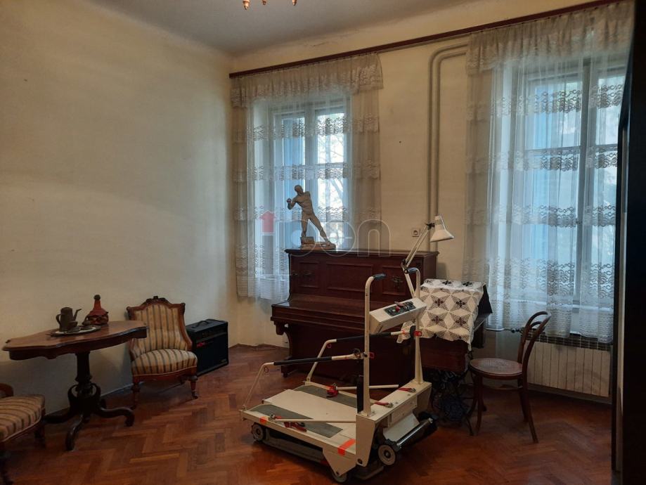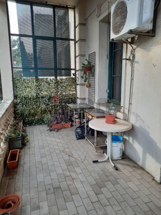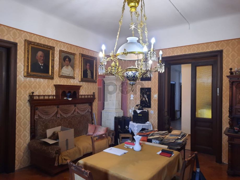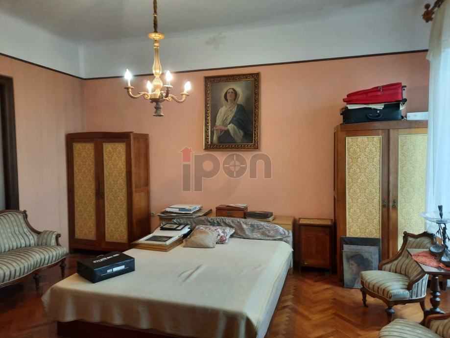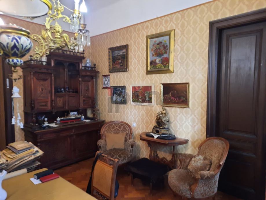 Sastoji se od 4 sobe i dnevnog boravka. Dvije sobe i dnevni boravak su na južnoj osunčanoj strani sa izlazom na veliki balkon(17,5m2) . Fantastičan pogled na grad i more. Djelomično je zaklonjen sa libanonskim cedrom koji je star kao i sama vila ( 1901g.). Na istočnoj strani su dvije sobe a manja je sa protekom godina od sobe za sluškinju pretvorena u spremište i hobi radionu za vlasnika stana. Može se vratiti opet da bude komotna soba.