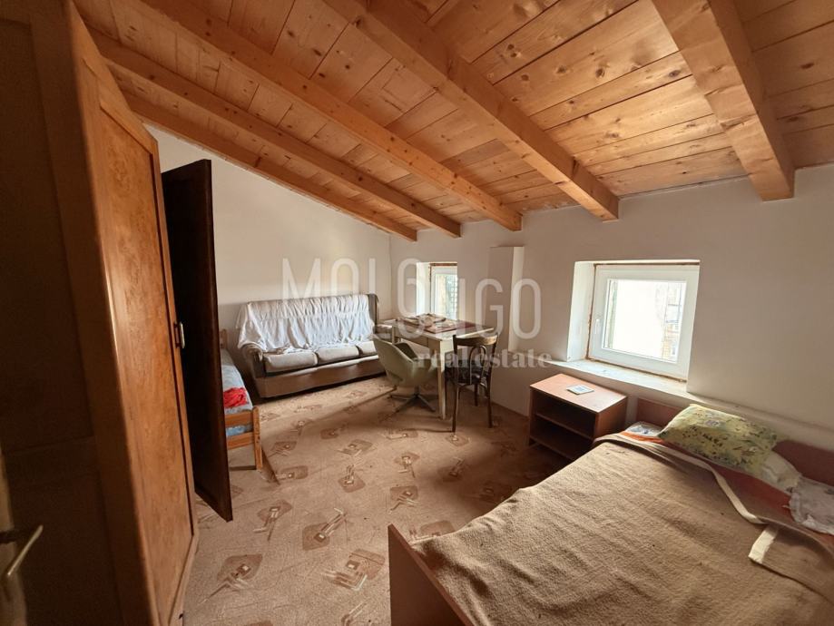 Potkrovlje: dvije spavaće sobe, prostor za kuhinju i veća kupaonica. U ovom dijelu kuće stolarija je novija, kao i krovište s potpuno novim gredama.