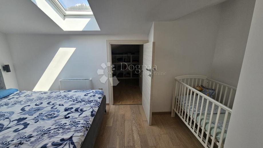 Unutarnjim stepeništem se dolazi u galerijski prostor (oformljen kao radni dio i dječja igraonica),te hodnih vodi prema još jednoj kupaonici i velikoj spavaćoj sobi sa velikim spremištem.