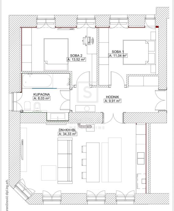 BULEVARD, u ponudi imamo stan od 76,5 m2 koji se sastoji od kuhinje sa blagovaonom i dnevnim dijelom, dvije spavaće sobe, kupaone i hodnika. Nova stolarija, nove instalacije struje i vode, betonska ploča.