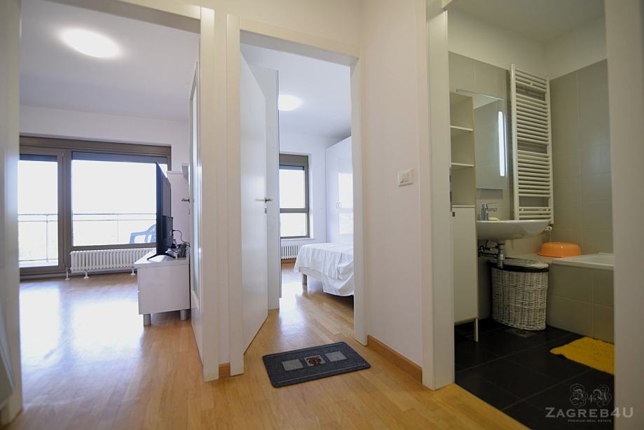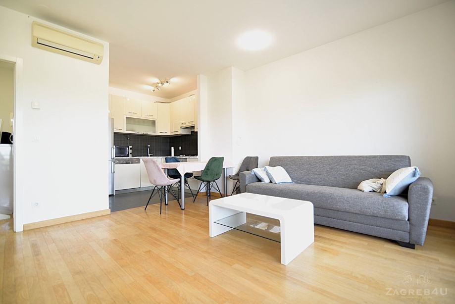The Zagreb4U agency presents a cozy 1-bedroom apartment (56 m2) on the 6th floor of a new building with elevator, Bundek, Sredisce. NOT FOR SALE!
