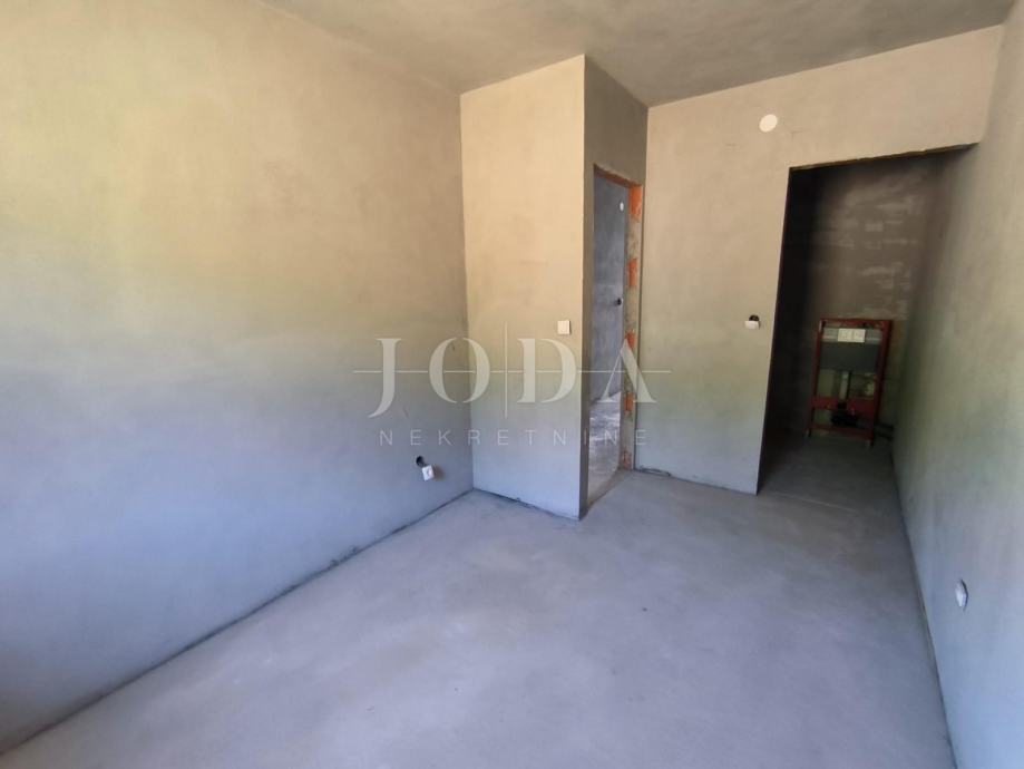 Stan je u roh bau fazi gradnje i kao takav se prodaje. Provedena struja, voda, kanalizacija, separator, instalacije za klima uređaje, keramika po stepeništu, vrata na drvarnici. Stan je dvosobni, dnevni boravak, kuhinja i blagovaona, dvije kupaonice, wc, izba, hodnik i velika loggia površine 13,80 m2.