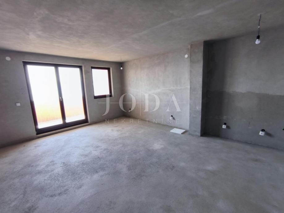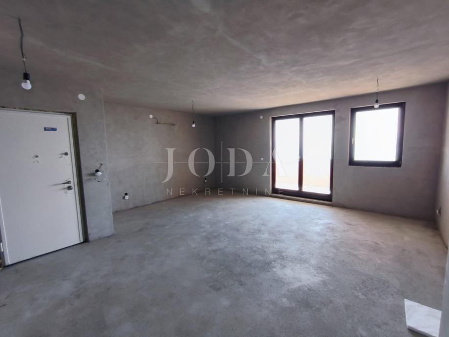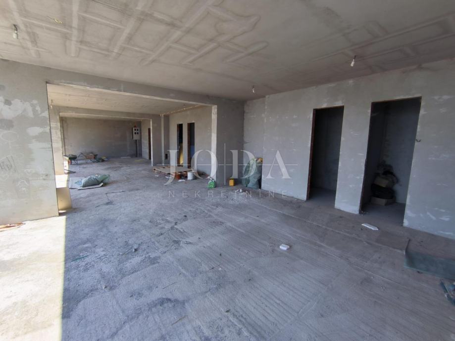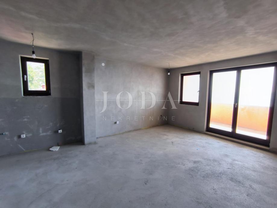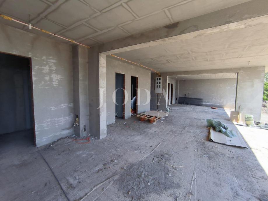 Stan je u roh bau fazi gradnje i kao takav se prodaje. Provedena struja, voda, kanalizacija, separator, instalacije za klima uređaje, keramika po stepeništu, vrata na drvarnici. Stan je dvosobni, dnevni boravak, kuhinja i blagovaona, dvije kupaonice, wc, izba, hodnik i velika loggia površine 13,80 m2.