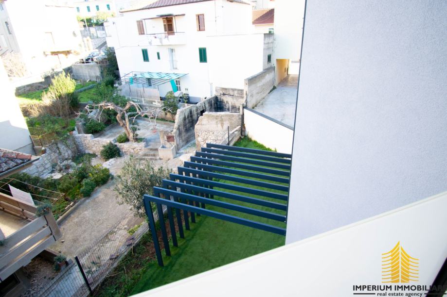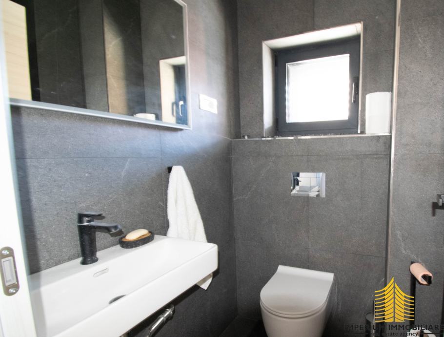Opis Prostora: Prostor se sastoji od dva toaleta, hodnika, tri odvojene prostorije te prostrane terase. Dodatno, u podrumu zgrade nalaze se ostava i privatno garažno mjesto.