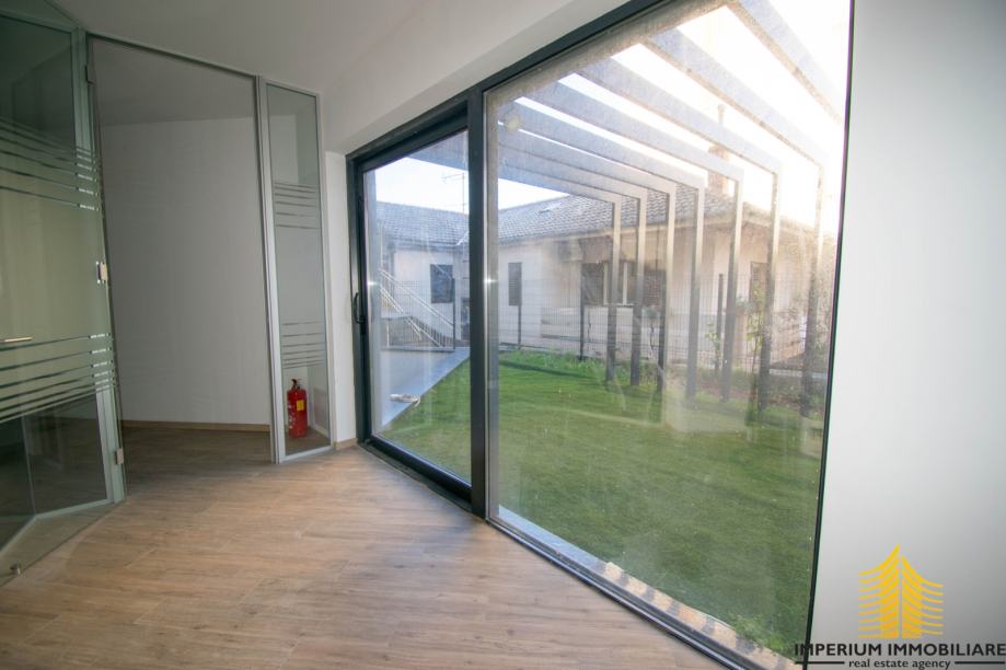 Opis Prostora: Ovaj elegantni poslovni prostor obuhvaća čekaonicu, hodnik, tri prostorije odvojene staklenim stijenama te dva toaleta. Dodatno, prostoru pripada i vrt sa stražnje strane. Garažno mjesto i ostava u podrumu pružaju dodatnu funkcionalnost.