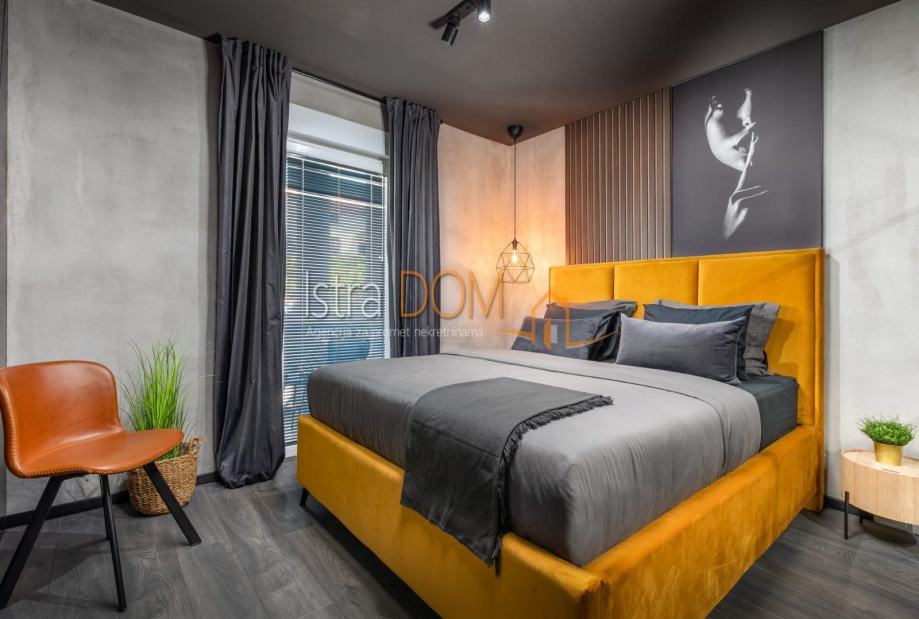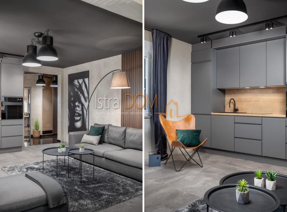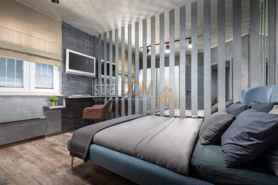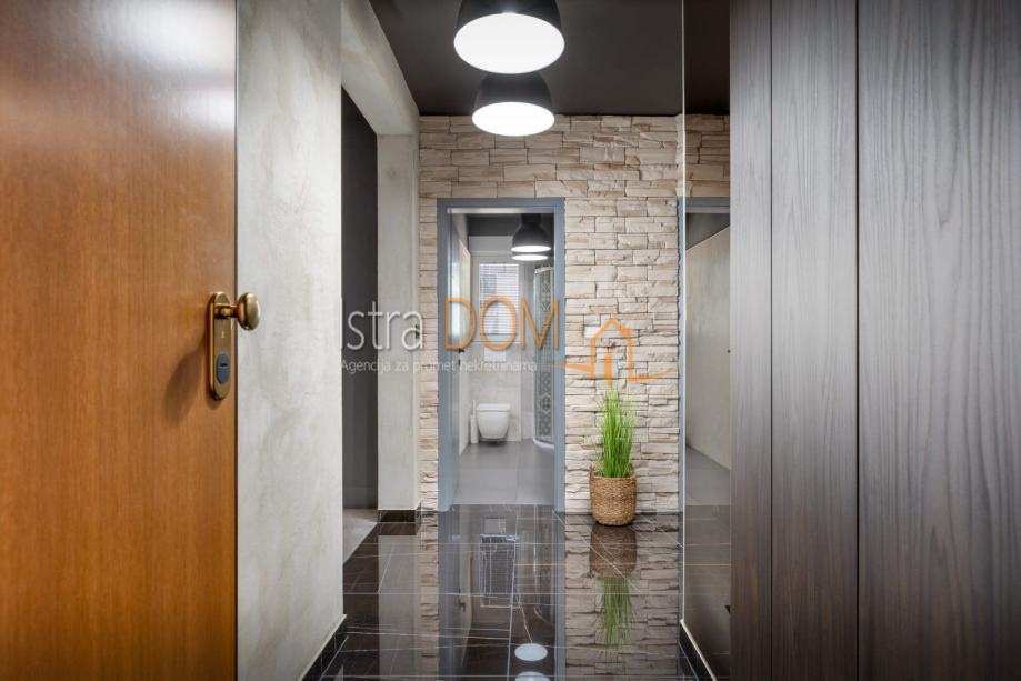 Stan je u potpunosti renoviran, luksuzno uređen i opremljen, te se sastoji od hodnika, dvije spavaće sobe, dnevnog boravka sa kuhinjom i blagovaonom,