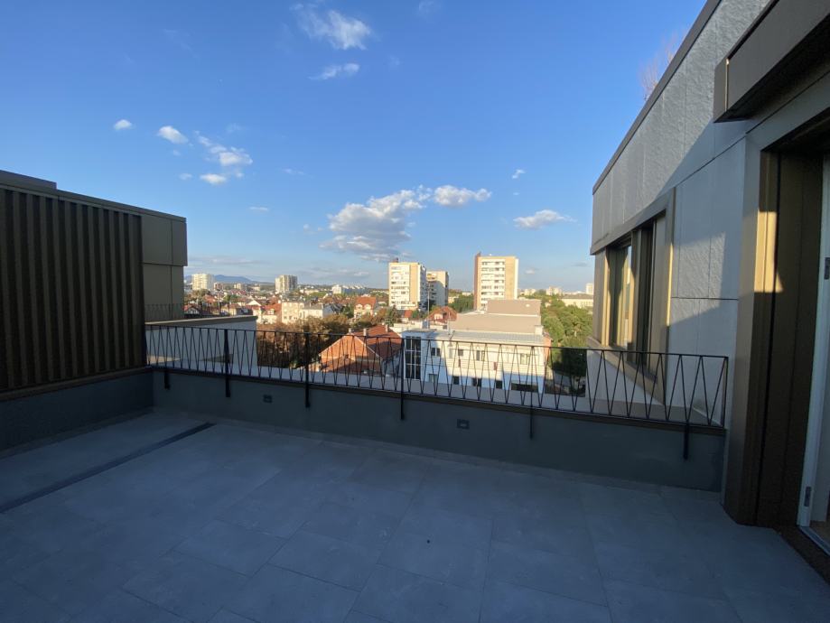 Predivan penthouse (peti kat) u Bužanovoj ulici, BLOK B - VMD zgrada, koji ima cca 105 m2 unutarnjeg prostora i 22 m2 predivne terase.Stan se sastoji od 3 spavaće sobe od kojih master spavaća soba ima svoju kupaonu sa tušem i kadom. Prostrani dnevni boravak sa open space kuhinjom i blagavaonom sa direktnim izlazom na predivnu terasu. Stan ma još jednu kupaonu sa tušem, dva hodnika te dva garažna mjesta.