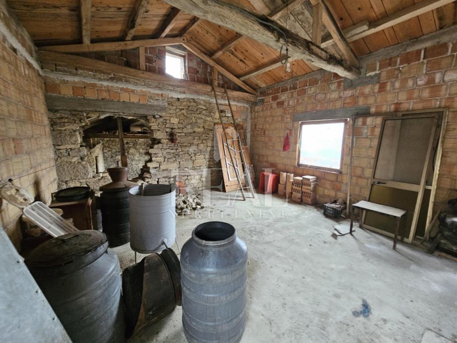 Započeta adaptacija starine površine 98 m2 stambenog prostora na katu od kojeg može se napraviti 2S+DB apartman i konobe u suterenu 55 m2 i dva natkrivena parkirna mjesta. Kuća je udaljena 2km od jezera i nalazi se na mirnom i tihom mjestu. Udaljeno 14 km od Buzeta.