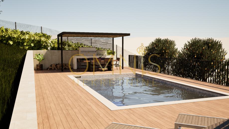Građevinska dozvola je izdana, a komunalni doprinosi su već plaćeni, što predstavlja veliku prednost i uštedu za budućeg vlasnika. Okruženje je izuzetno uredno i u razvoju – tik uz parcelu nalazi se moderna kuća s bazenom, a preko puta su u izgradnji još tri luksuzne vile, što ovom dijelu mjesta daje ekskluzivan i suvremen izgled.