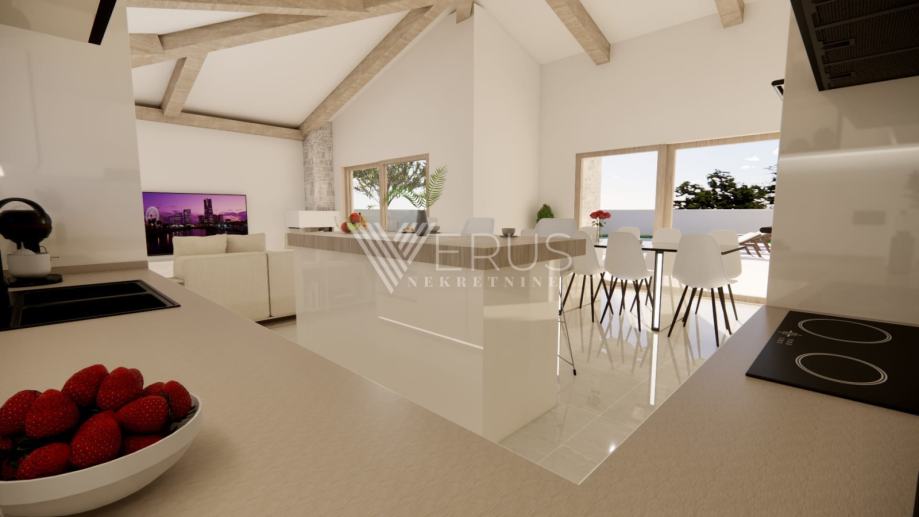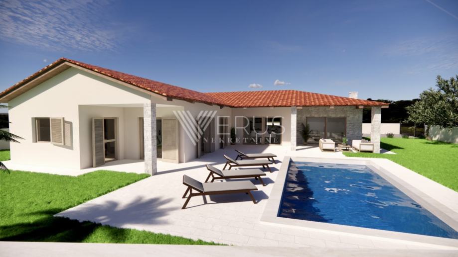 Prodajemo samostojeću prizemnicu u izgradnji. Kuća se nalazi na kraju malog mjesta okružena zelenilom i maslinicima. Sastoji se od tri spavaće sobe od kojih master ima vlastitu kupaonicu s wc-om, open space koncepta dnevnog boravka s kuhinjom, hodnika, utilitya, druge kupaonice s wc-om te natkrivenih terasa. Na prostranoj okućnici se nalaze parkirna mjesta, bazen te kultivirana okućnica. Bazen je dimenzija 8x4( 32 m2). Hlađenje u kući je predviđeno na klima uređaje. Kuća će biti opremljena prvoklasnim materijalima. Postoji mogućnost pošto je u izgradnji da budući kupac prilagodi tlocrt i raspored po svome guštu. Također će biti postavljena prva faza podnog grijanja pa kupac može izabrati grijanje u kući. Kuća se prodaje u fazi ključ u ruke te je kupac oslobođen od poreza na promet nekretnina. Ispod kuće je maslinik i zeleni pojas te nema daljnje gradnje. Odlična nekretnina na mirnoj i tihoj lokaciji svega nekoliko minuta vožnje od grada Labina. PREPORUKA AGENTA!!!