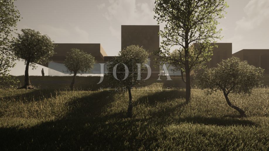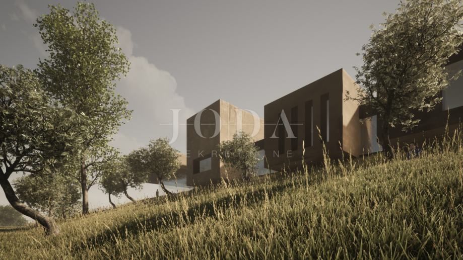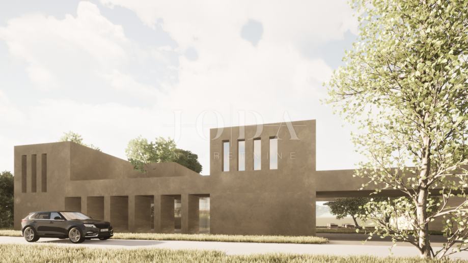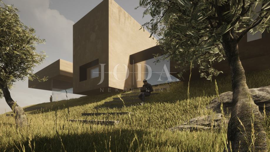 Bruto površine 420 m2, ima okućnicu površine 1,631 m2 te na prvoj etaži bazen od 28m2.