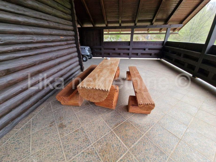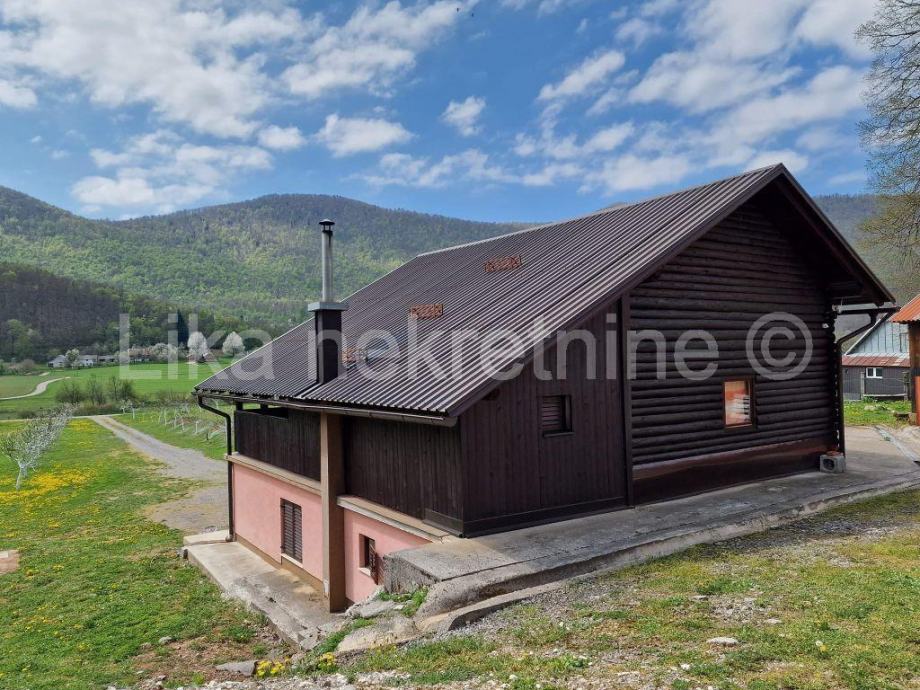 BUŽIM ( Gospić ) - obiteljska kuća katnica, dvorišnja zgrada, ostava, garaža, veliki grill za pečenje uz kojeg je i sudoper sa vodom, velika terasa, sve namješteno i useljivo, registrirano kao kuća za odmor sa tri zvijezdice ( 3* ), u netaknutoj prirodi, okružena sa puno sadnica raznog voća, iza kuće šuma, lijep pogled, cijeli dana sunčana strana, velika privatnost, povučena sa ceste 200 m prema šumi, TOP lokacija, održavano, uređeno, namješteno.