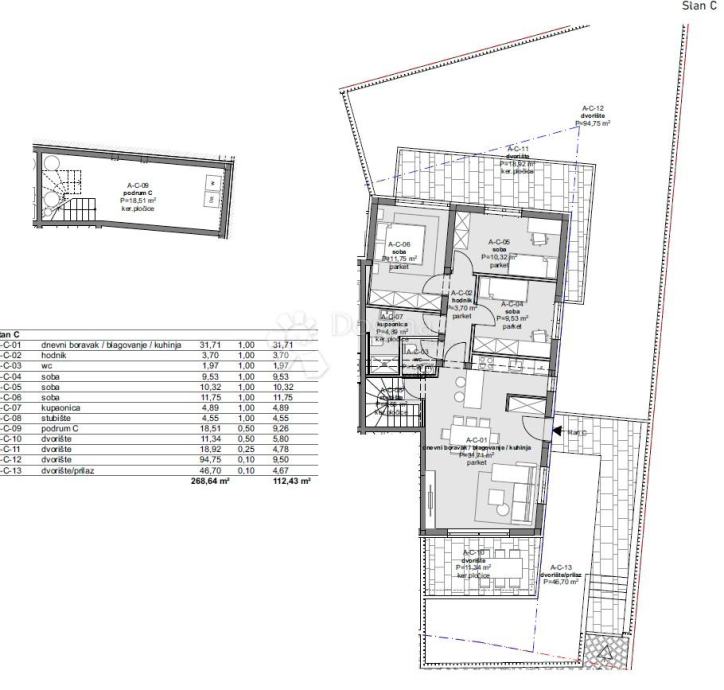 Pomoćni prostori (podrum): 23,06 m² BRUTTO