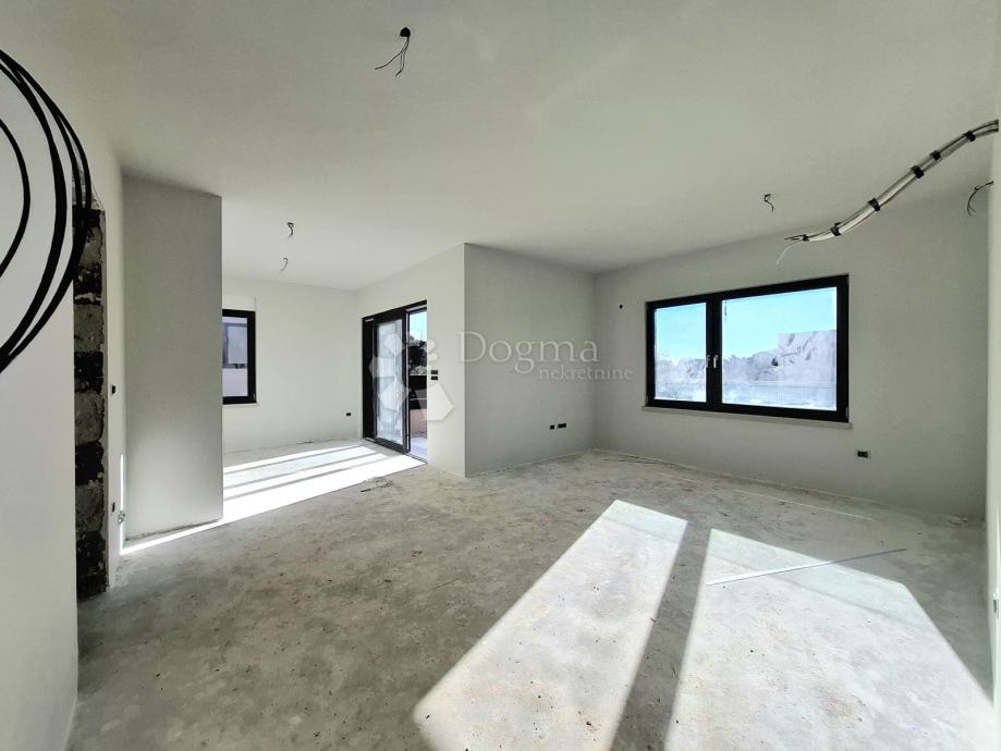 Iz dnevnog boravka izlazite na terasu i prostranu okućnicu koja okružuje cijeli stan
