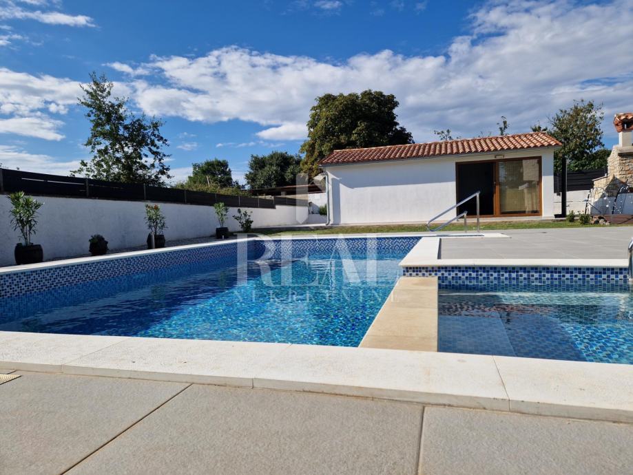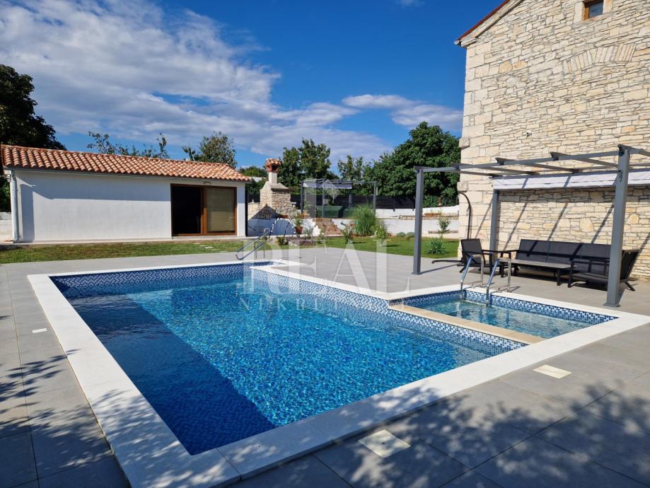 ČABRUNIĆI-OPĆINA SVETVINČENAT, PREKRASNA KAMENA VILA NA OKUĆNICI OD 1300 m2, PRIZEMLJE + KAT, BAZEN, VRTNA KUĆICA, KOMPLETNO OPREMLJENA!