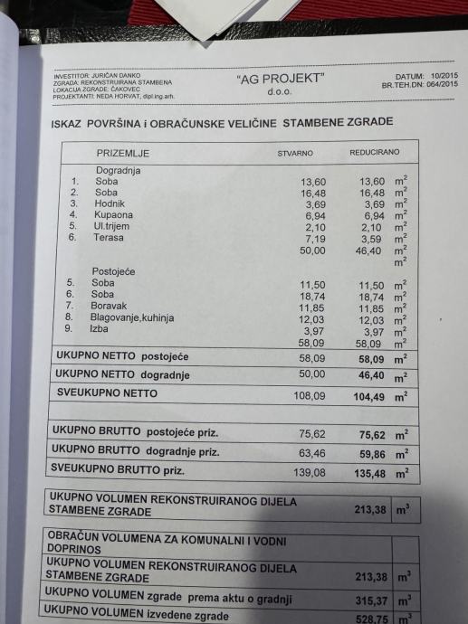Prodaje se obiteljska kuća prizemnica na periferiji grada Čakovc. Kuća je uvućena s glavne ceste 45 metara, a sastoji se od: ulazni hodnik, dnevni boravak, kuhinja, blagovaona, tri spavaće sobe, kupaona + WC i natkrivena terasa. Dvorište je površine 1.139m², dok je sama kuća površine 105,49m². Grijanje u kući je centralno na plinski bojler u kombinaciji s peći na kruta goriva. Termofasada od 8cm i krov obnovljeni 2010. godine, stolarija djelomično promijenjena. U dvorištu se još nalazi pomoćno objekat za razne namjene površine 81m². Dokumentacija uredna.