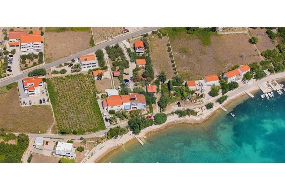 Zemljište je pravokutnog oblika i ima otvoren pogled na cijelu uvalu.