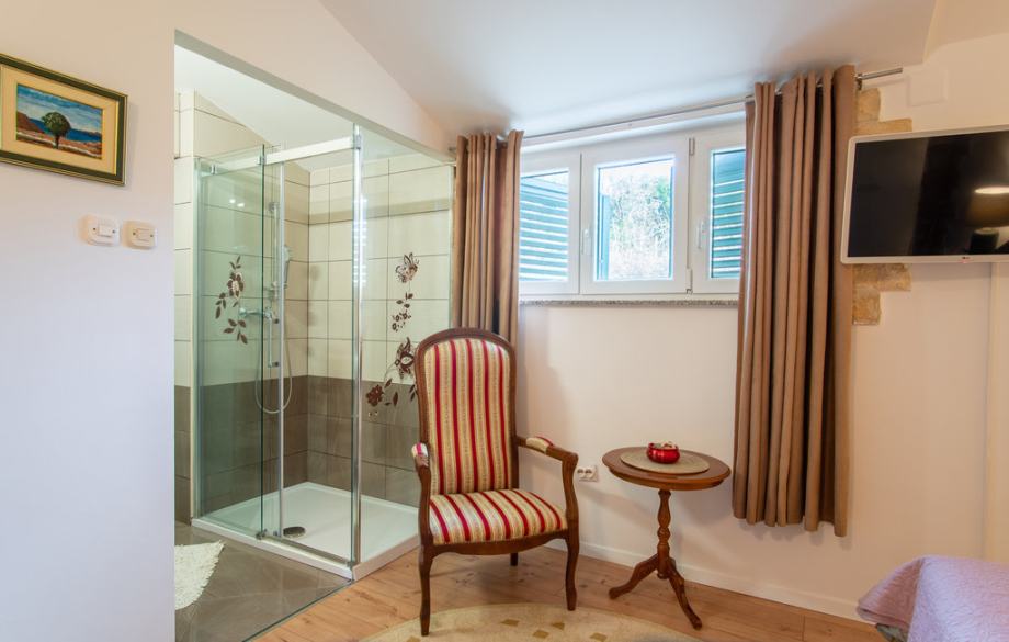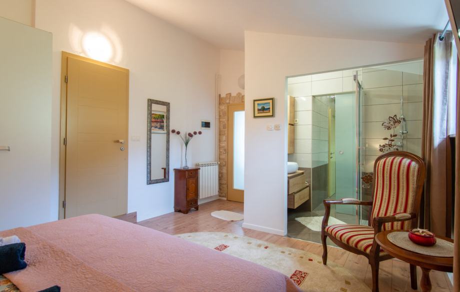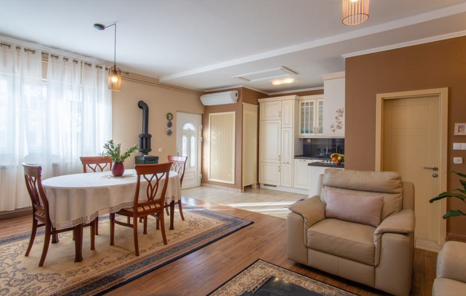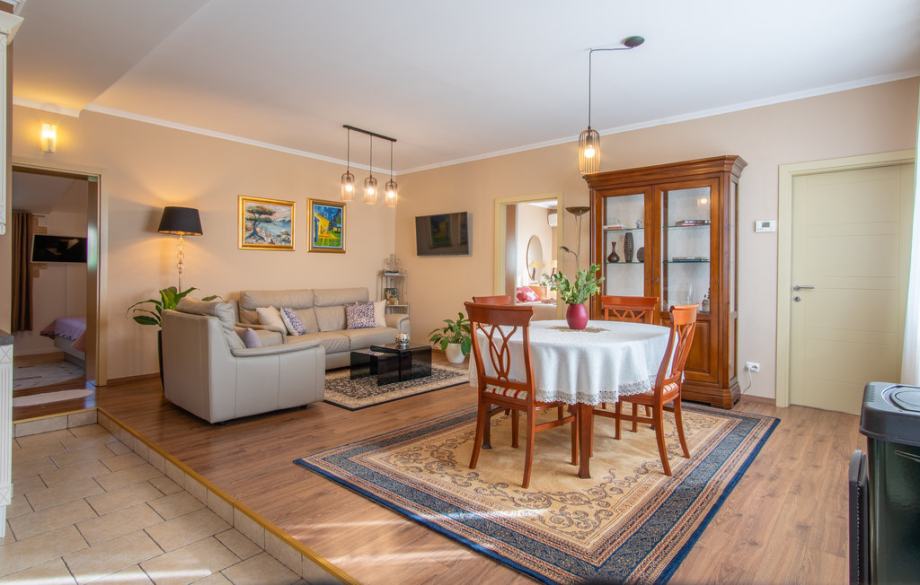 Kuća površine 148 m2 ima dnevni boravak s kuhinjom, 3 spavaće sobe i 2 kupaonice. Radi se o dva stana, koja mogu biti odvojena.