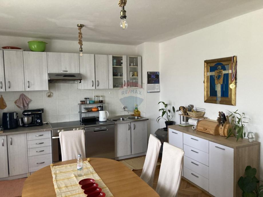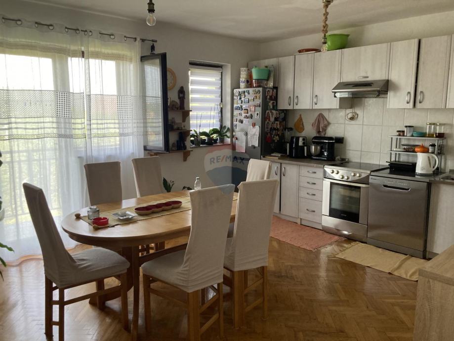 Sastoji od hodnika, kupaone, 2 balkona, 3 sobe, od kojih su 2 spavaće, a kuhinja, blagovaona i dnevni boravak su spojeni u jednom prostoru. Kuhinja, dnevni i blagovaona imaju izlaz na balkon s lijepim otvoren pogled. Kuća se nalazi na kraju ulice što joj osigurava mir i tišinu, međutim dovoljno je blizu svim traženim sadržajima poput trgovine, ljekarne, autobusne stanice i crkve.