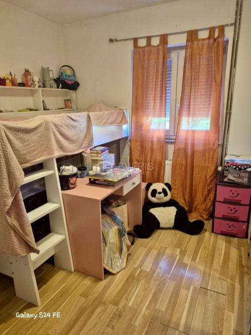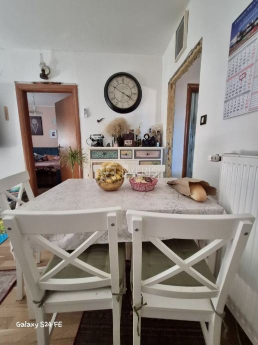 Na prvom katu kuće se nalazi trosoban stan s dnevnim boravkom, kuhinjom, kupaonom i balkonom.