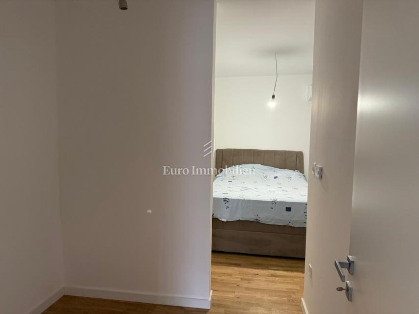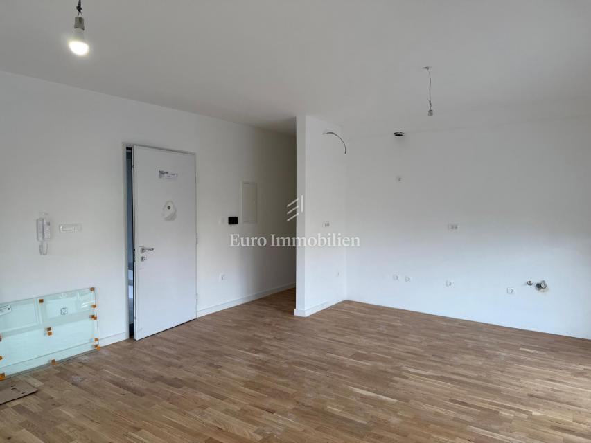 Prodaje se stan u kvalitetnoj novogradnji ukupne površine 95,50 m², smješten na mirnoj i vrlo traženoj lokaciji u Čavlima, u blizini samog centra. Stan je s ulazne strane u razini prvog kata, dok se s druge strane nalazi u prizemlju, s izlazom na pripadajući vrt, što mu daje posebnu funkcionalnost i osjećaj privatnosti.