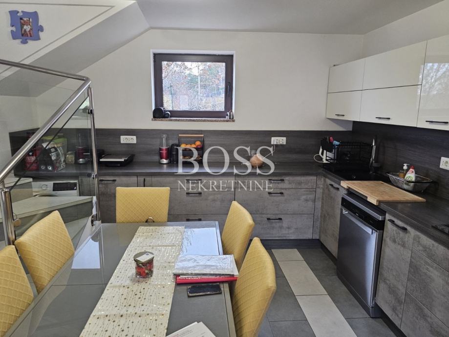 Čavle, na prodaju je kuća s dvije stambene jedinice i dodatnim objektom. Ova kvalitetno građena kuća sastoji se od dvije odvojene stambene jedinice, što je čini idealnom za višečlanu obitelj, zajednički život s privatnošću ili investiciju. Prva stambena jedinica je stan površine 50m², koji se sastoji od spavaće sobe, kuhinje, dnevnog boravka i kupaone – funkcionalno i ugodno uređen prostor za svakodnevni život ili najam. Druga stambena jedinica je prostrani dvoetažni stan od 130m². U prizemlju se nalazi kuhinja, veliki dnevni boravak i spavaća soba, dok unutarnje stepenice vode na kat gdje su smješteni dodatna spavaća soba i kupaona, pružajući osjećaj privatnosti i komfora. Ispred kuće nalazi se terasa, savršena za opuštanje, boravak na otvorenom i druženja. Uz kuću se nalazi i gospodarska zgrada površine 120m², koja nudi brojne dodatne mogućnosti – skladište, radionicu, garažu ili prenamjenu prema potrebama budućeg vlasnika. Kuća je opremljena grijanjem na pelete, ima tri klima uređaja, a fasada s 10 cm toplinske izolacije osigurava energetsku učinkovitost i ugodnu temperaturu tijekom cijele godine. Nekretnina predstavlja izvrsnu priliku za stanovanje, najam ili kombinaciju privatnog i poslovnog prostora. Boss, kontakt: 091/534-2214 Mirko