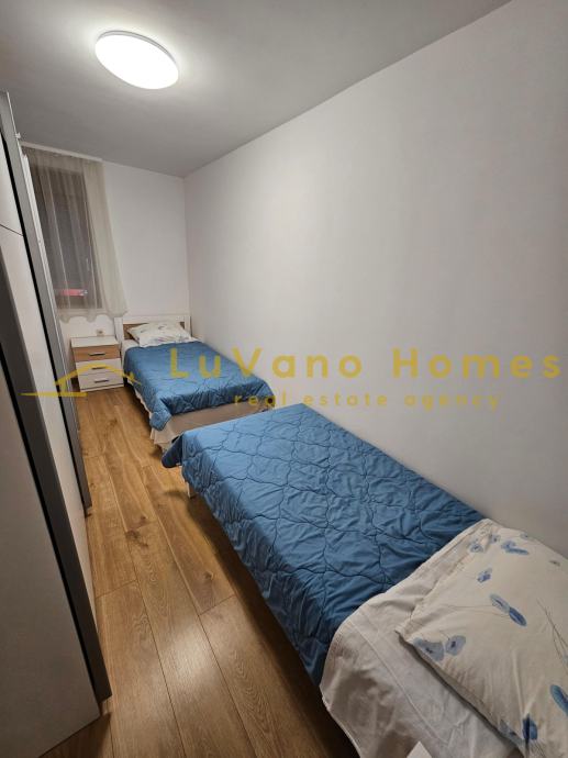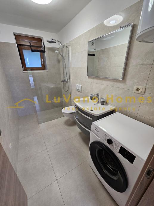 U ponudi za najam imamo moderno uređen i održavan dvosoban stan ukupne površine 55 m², smješten u prizemlju obiteljske kuće. Stan je potpuno namješten, te je opremljen svim potrebnim sadržajima za ugodan i funkcionalan boravak, te posjeduje PVC stolariju, klima uređaj, internetsku vezu, TV, perilicu za rublje, perilicu za suđe, – idealan je za smještaj radnika.