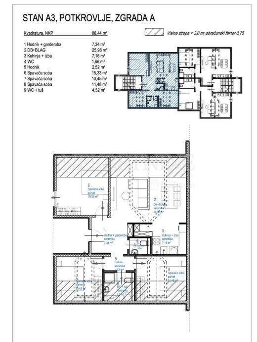STAN A3 - 3. kat-potkrovlje =314.278,00 € + 37.500,00 € = 351.778,00€ sa 2 vanjska parkirna mjesta