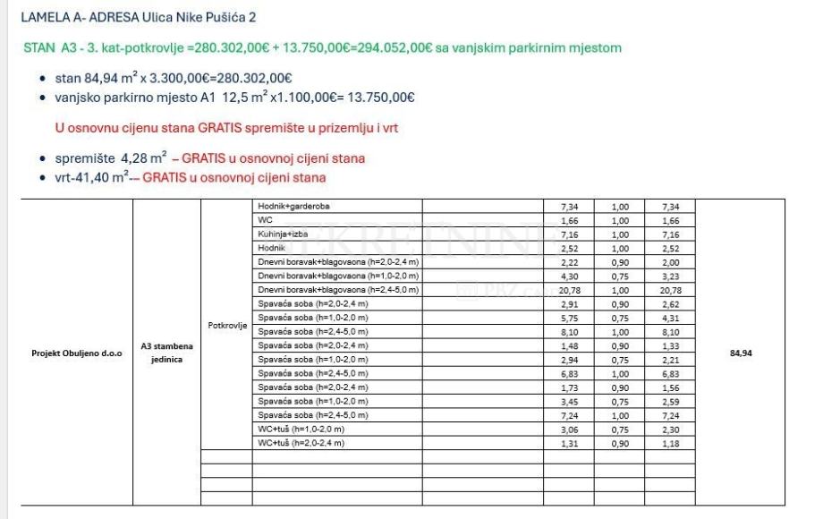 stan 84,94 m² x 3.700,00€=314.278,00€