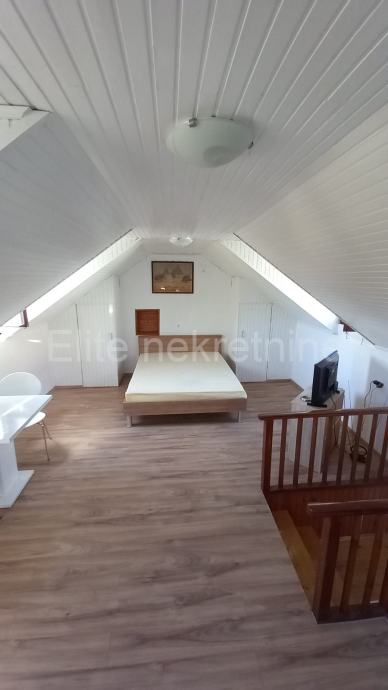 U potkrovlju kuće je mini kuhinja, soba i kupaonica. Kuća ima potrebu za renoviranjem.
