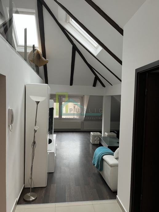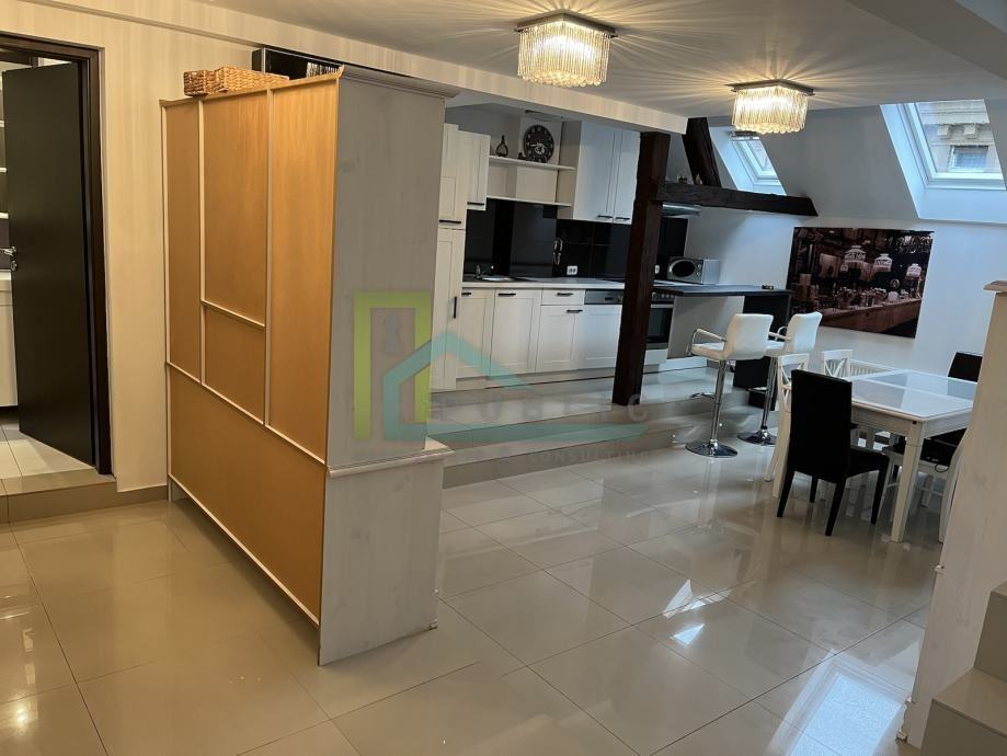 Iznajmljuje se luksuzan četverosoban dvoetažni stan površine 125 m2 na trećem katu stambene zgrade u centru grada - Cvjetni trg.