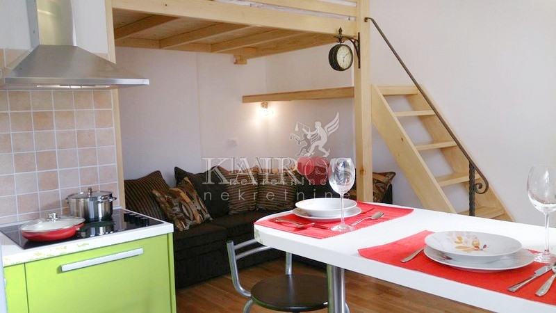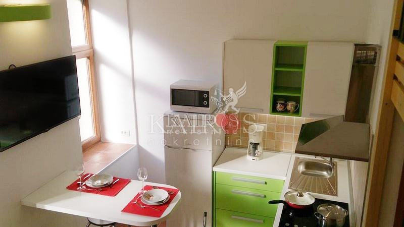 CENTAR, iznajmljujemo lijepo namještenu garsonijeru površine 20 m2. Stan je kompletno namješten i opremljen. U stanu je napravljena galerija na kojoj se nalazi bračni krevet, tako da je u donjem dijelu stana kuhinja s dnevnim boravkom i kupaonica.
