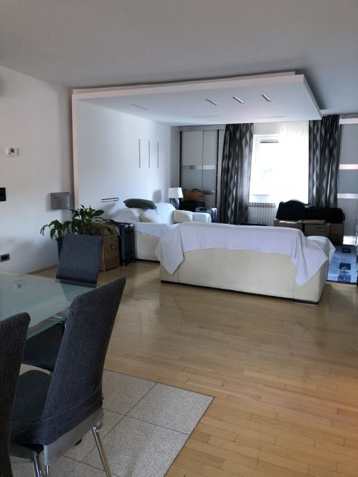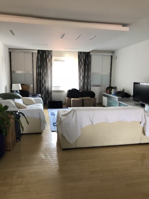 Iznajmljuje se predivan stan, na svega 10 min lagane šetnje do glavnog gradskog trga. Stan se nalazi u dobro održavanoj zgradi (betonsko-armirane konstrukcije) sa liftom, na 3 katu. Stan se sastoji od ulaznog dijela sa garderobnim ormarima, 3 spvaće sobe, dvije kupaonice (tuš i kada), saune, prostranog i sunčanog otvorenog prostora kuhinja/blagovaonica/boravak, te garaže.