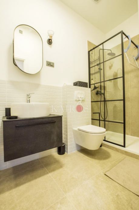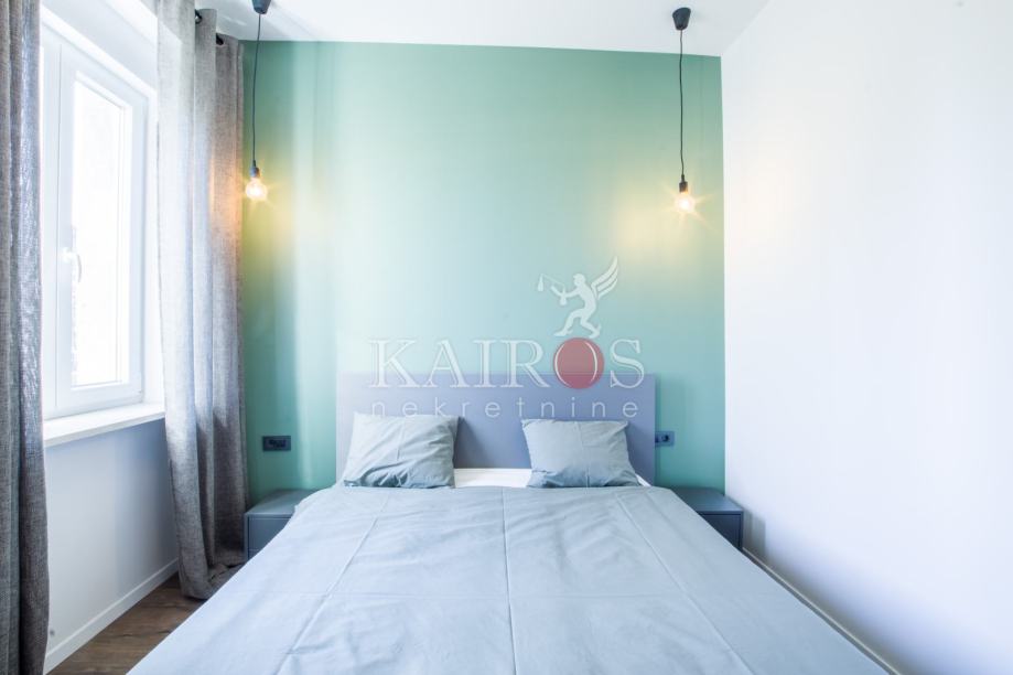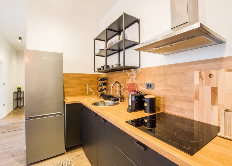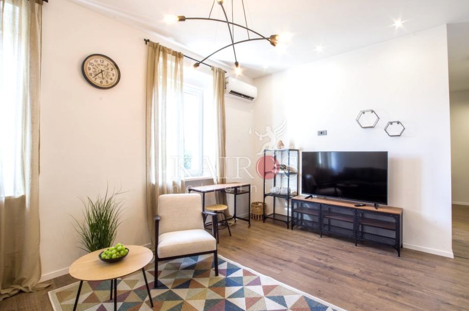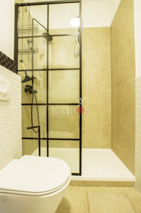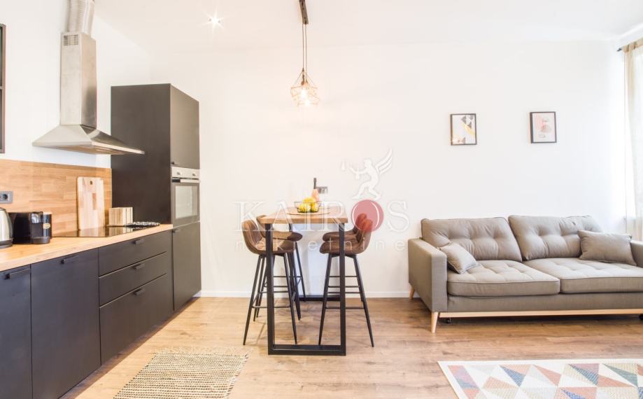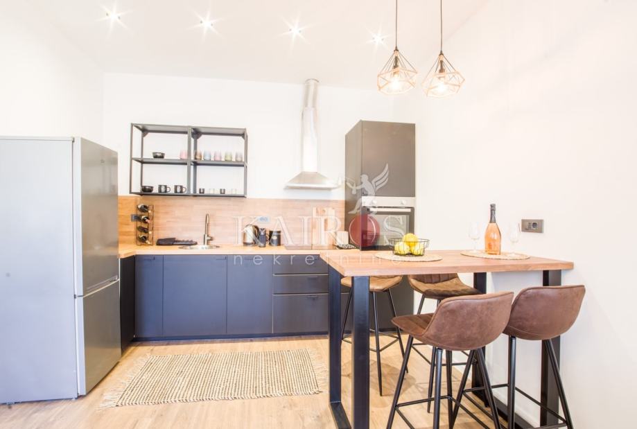 CENTAR, kompletno uređen (2023. g.) stan površine 50 m2, jednosoban s dnevnim boravkom. Stan je namješten modernim namještajem, opremljen svim potrebnim kućanskim aparatima (sat/kabl/tv, LED TV, dva klima uređaja, hladnjak s ledenicom, ugradbeni štednjak, ugradbena pećnica, perilica posuđa, perilica rublja).