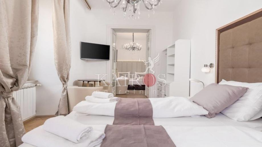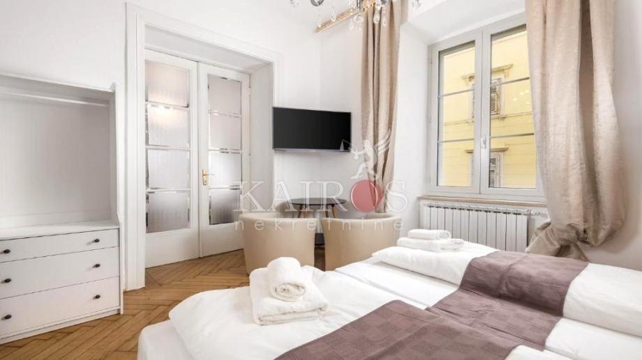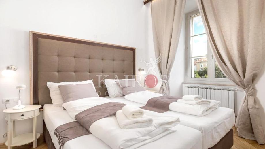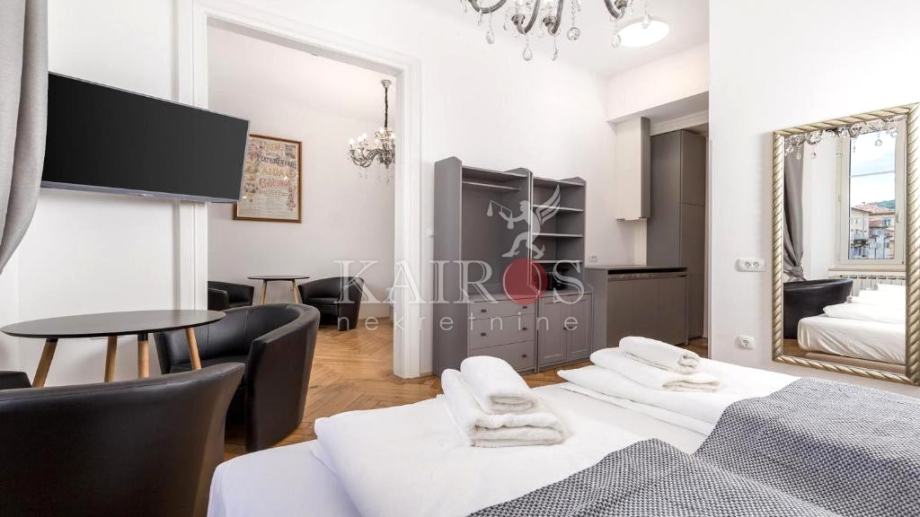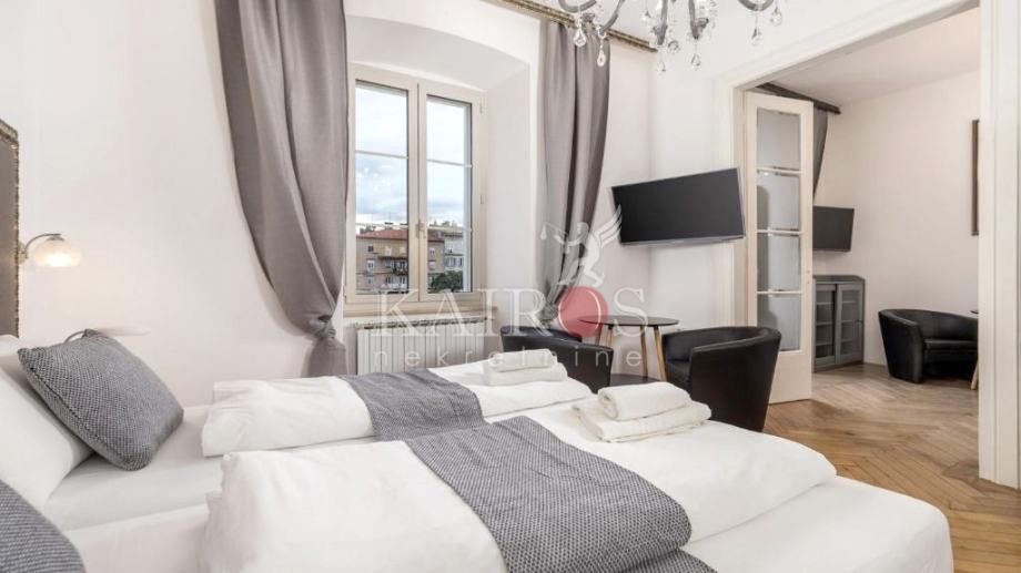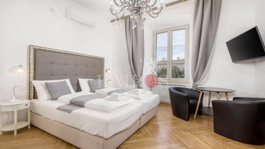 U užem centru Rijeke, prodajemo stan na 1. katu lijepe zgrade austro-ugarske gradnje. Stan je površine 80 m2, a preuređen je na način da su napravljena dva stana, svaki površine 40 m2. Kompletno je sve renovirano (instalacije vode i struje, zidovi, podovi, kupaonice...). Stanovi su kategorizirani sa četiri zvjezdice, u turističkom najmu.
