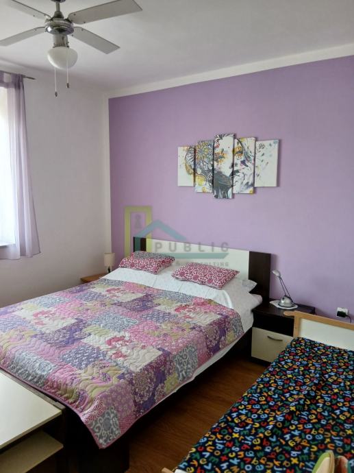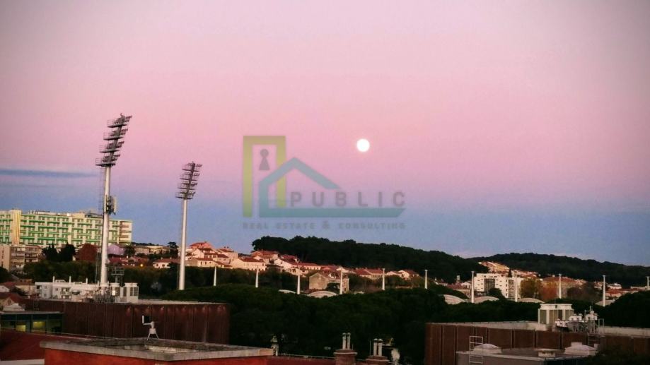 Prodaje se komforan četverosoban stan površine 97 m2 na petom katu stambene zgrade bez lifta (posljedni kat) u širem centru Pule - Nazorova ulica.