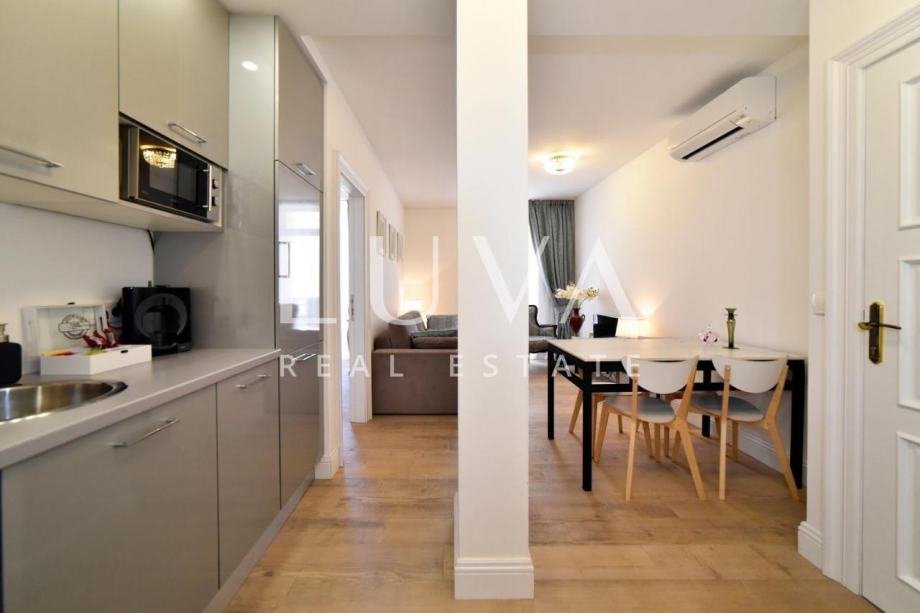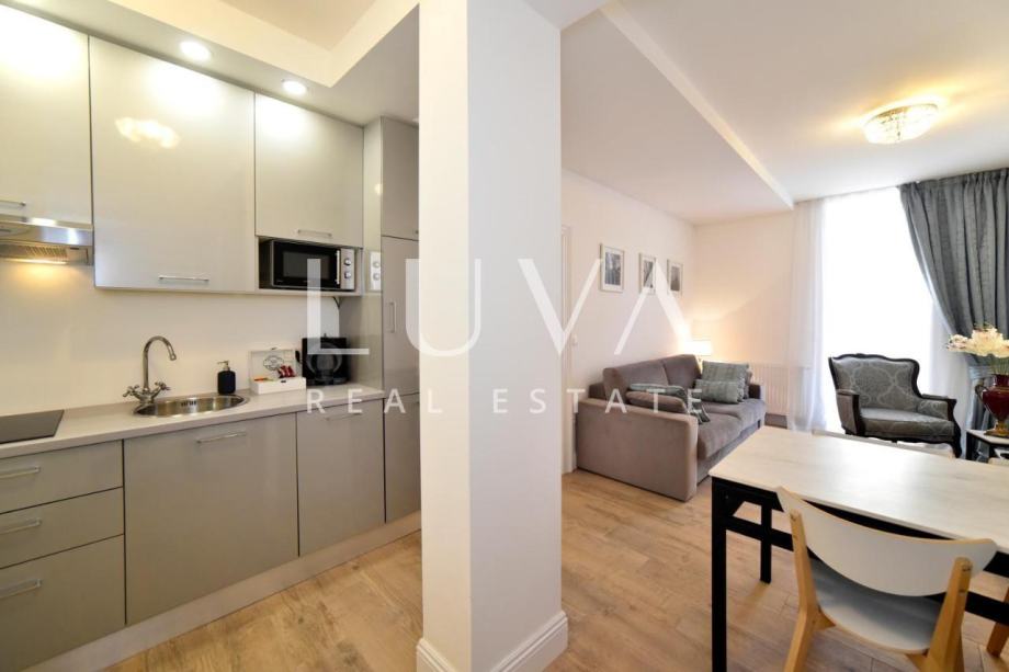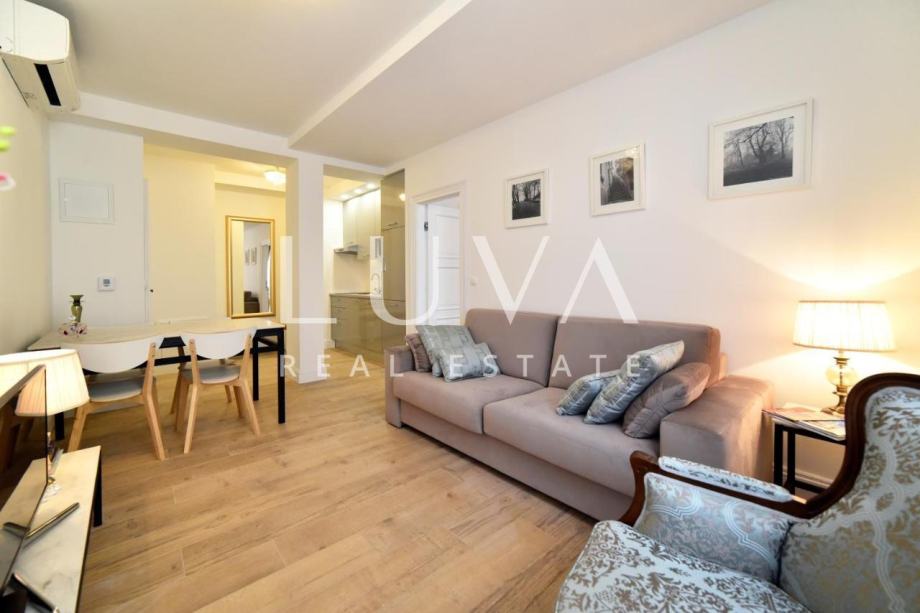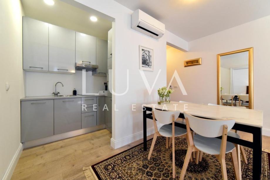 Prodaje se lijepo uređen stan u samom centru Zagreba, u Berislavićevoj ulici. Stan ima 118m2, nalazi se na 2. katu i podijeljen je u 3 zasebna apartmana sa zajedničkim hodnikom. Apartman 1 je studio apartman s vlastitom kupaonicom i malom kuhinjom. Apartmani 2 i 3 imaju dnevni boravak, kuhinju, odvojenu spavaću sobu i vlastitu kupaonicu. Stan se prodaje potpuno uređen i namješten.