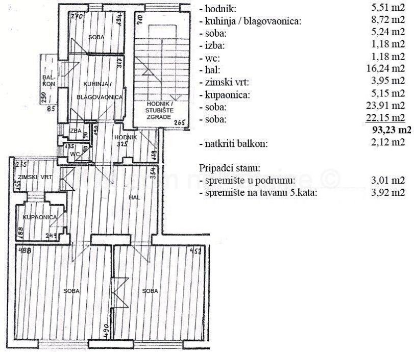 Prodaje se prostran građanski stan s balkonom i zimskim vrtom. Nalazi se na 4. katu zgrade od 5 katova. Izrazito svijetao zbog svoje trostrane orijentacije. Smješten je u blizini vrtića, škole, doma zdravlja, trgovine, tramvajske stanice te drugih bitnih sadržaja. Stanu pripadaju spremišta na tavanu (3.92m2) i podrumu (3.01m2).
