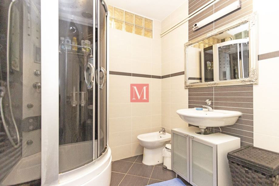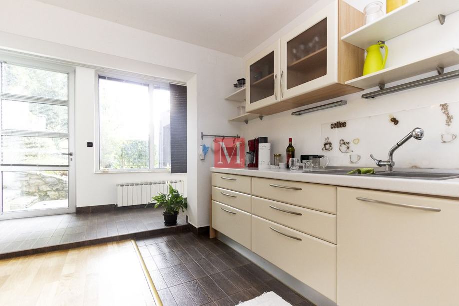 Stan se sastoji od velikog dnevnog boravka, kuhinje s blagovaonicom, 2 spavaće sobe, velike kupaonice, gostinjskog wc, ostave i 2 terase.