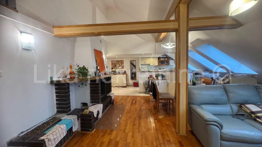 Dvije spavaće sobe su u prizemnom dijelu i jedna na galeriji te kupaone i WC odvojen. Iz jedne sobe postoji izlaz na balkon za ispijanje jutarnje kave. U velikom otvorenom prostoru smješten je i prekrasan funkcionalan otvoren kamin kao duša prostora.
