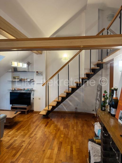 Stan se nalazi na četvrtom katu bez lifta u građanskoj zgradi neoštećenoj u potresu. Potpuno je građevinski iznova uređen (zidovi, podovi, struja, voda, odvodnja). zbog svoje velike visine uređen je kao dvoetažni sa galerijom sa puno otvorenog prostora.