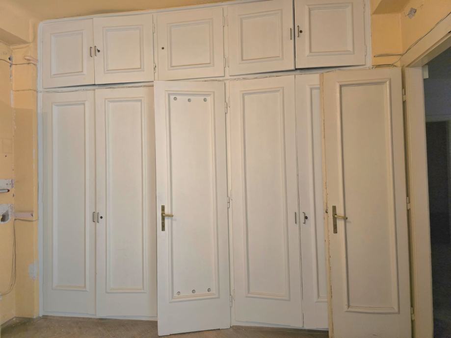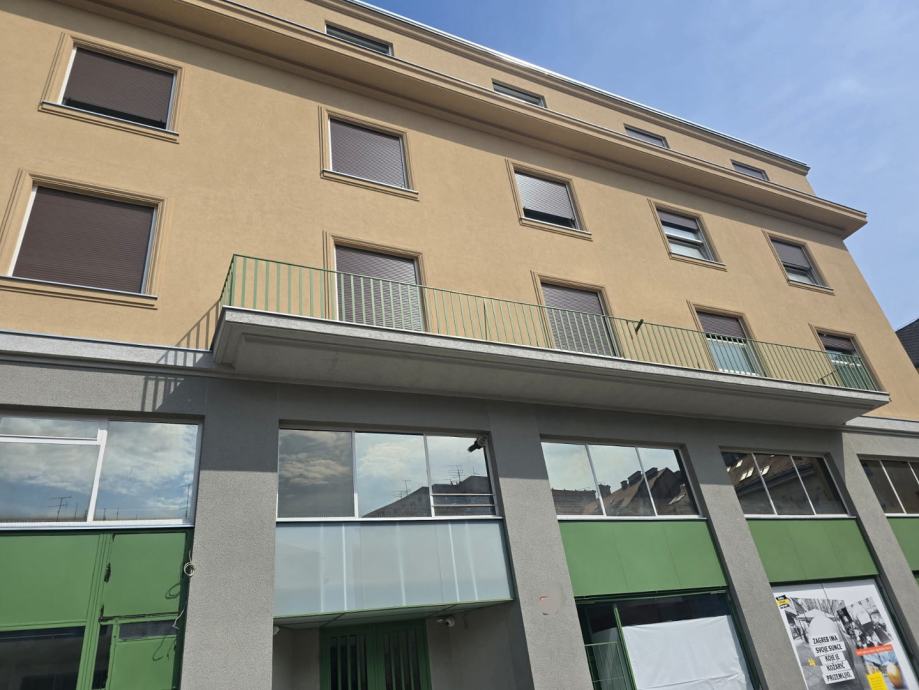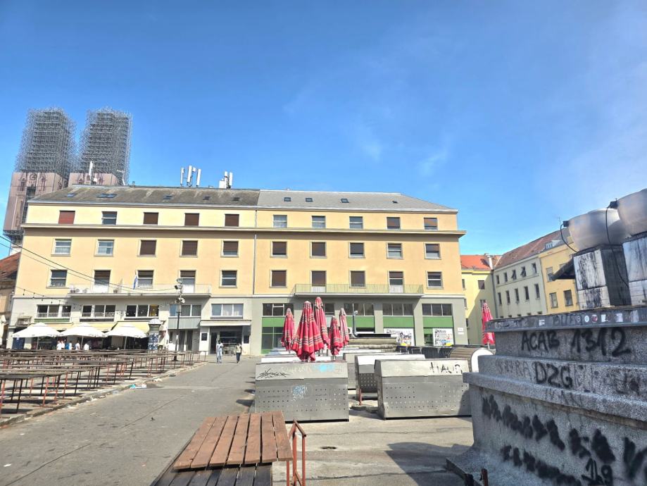 Stan se nalazi na 1. katu ( 3 velike sobe u nizu sa pogledom na tržnicu Dolac i sa izlazom na balkon, centralne prostorije cca 20 m2 tj. salon, ulaznog hodnika, kupaonice, dodatnog toaleta i ostave (moguća još jedna kupaonica), još jedne manje sobe i prostrane kuhinje sa izlazom na balkon) s izvornim arhitektonskim detaljima koji mogu poslužiti kao inspiracija za autentičnu obnovu. Na zgradi je 2024. obnovljena fasada, stavljen novi krov i ugrađeno novo dizalo.