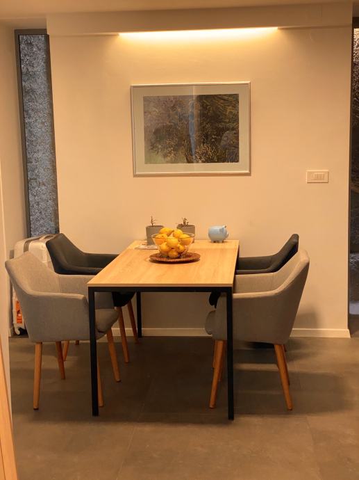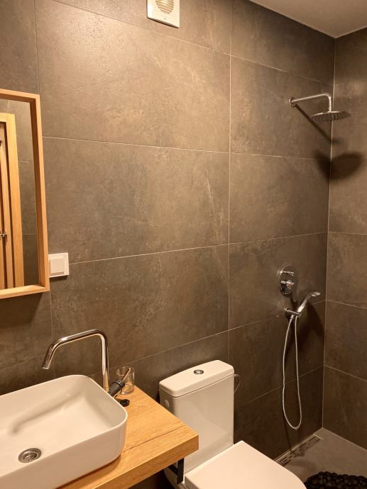 Stan je kompletno opremljen s novim namještajem i s novim kućanskim aparatima, s podnim grijanjem, klimom, perilicom, TV sustavom te se prodaje sve u kompletu.