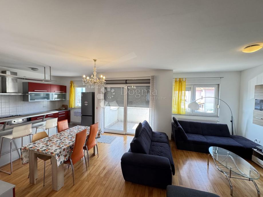 Stan se sastoji od prostranog dnevnog boravka povezanog s blagovaonicom i potpuno opremljenom kuhinjom, iz koje se izlazi na balkon. Prostor je ugodan, funkcionalan i vrlo svijetao. U hodniku se nalazi veliki ugradbeni ormar koji pruža dovoljno prostora za pohranu. Stan ima i dvije komforne spavaće sobe, što ga čini pogodnim za obitelj, par ili osobe koje žele dodatnu sobu za rad ili goste.