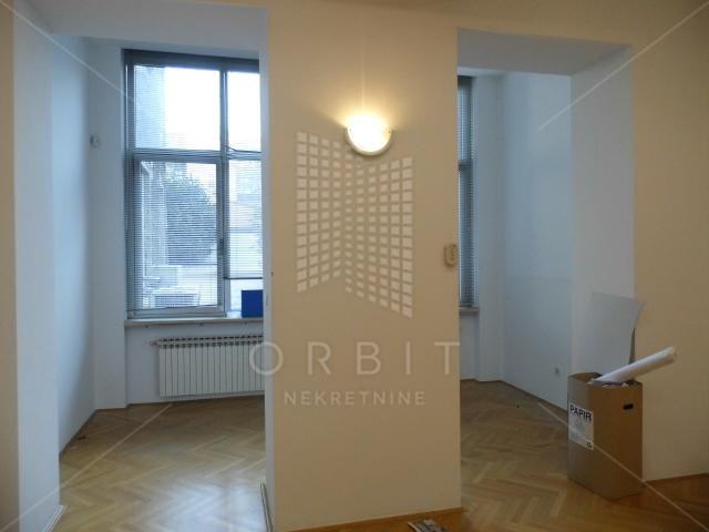 Kompletno renoviran i izuzetno svjetao građanski stan preuređen i etažiran kao poslovni prostor u visokom prizemlju zgrade, netto stambene površine 160,80čm. Tlocrtno se sastoji od predsoblja (21,56m), 4 uredske prostorije (29,75; 45,05; 25,85 i 24,36 čm), čajne kuhinje (4,08čm), sanitarnog čvora (3,77čm), garderobe (2,58čm) i balkona (3,80čm) orijentiranog istočno na uređeno dvorište. Svi podovi izmjenjeni, u punom tlocrtu betonska deka, ugrađene hidro i termo izolacije, kompletno nova vanjska i unutarnja stolarija. Nove instalacije struje, telefonije, vode, klime i centralnog. Novi parketi, sanitarije, keramika, kuhinja. Poslovnom prostoru pripada i neuknjiženo parkirno mjesto u uređenom dvorištu zgrade. Na samoj je zgradi kroz zadnjih je 20-tak godina napravljena hidroizolacija, sanirano i uređeno stubište, rasvjeta i prozori, obnovljeno je krovište, uređeni podrumi i dvorište, a iduće je godine predviđena obnova fasade. Nalazi se u najljepšem dijelu Gajeve prema Botaničkom vrtu. Neposredna blizina Trga bana Jelačića, tramvaja, glavnog kolodvora. Izvrsna je prilika za sistem co-workinga. Poslovni ljudi kojima je važno mjesto za rad i koji odsjedaju u vrhunskim hotelima do ureda imaju šetnju od najviše 10 minuta strogim centrom grada.