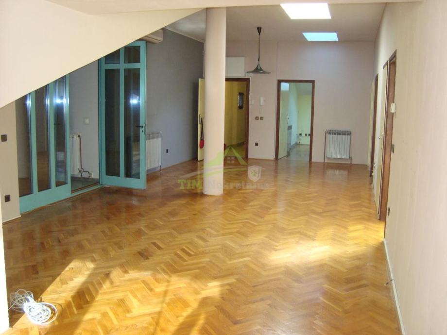 Četverosobni stan ukupne korisne površine 133,41 m2 (stvarne površine 140,42 m2)Odlična lokacija; centar grada; iz stana te terase se proteže prekrasan pogled po okolnim zagorskim bregima; Ivanščicu; ivanečku "Špicu"!Smješteni je u potkrovlju stambeno poslovne zgrade (ukupno 3 kata).Zgrada je kvalitetne gradnje; termofasada, ulaz opločen mramorom, ...U sobama parket, a u ostalim prostorijama keramika.Kompletna infrastruktura (struja, voda, plin, kanalizacija); sva brojila etažna.Plinsko centralno grijanje; klimatizacija; ALU i PVC stolarija, video portafon, protuprovalna vrata, alarmni sustav...